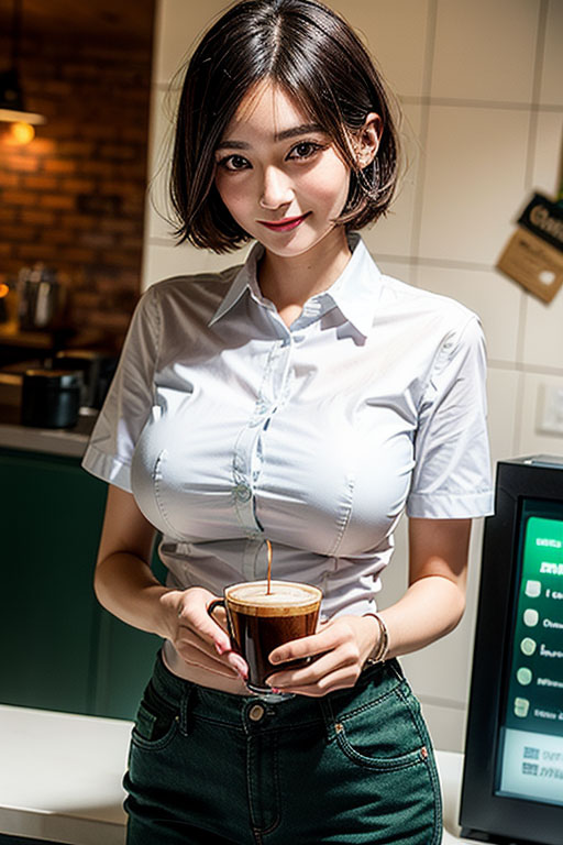 街の癒しの空間、素敵なカフェで働く綺麗なお姉さんに「おっぱい見せて」と大胆交渉!ぷるんと飛び出す美乳・爆乳!